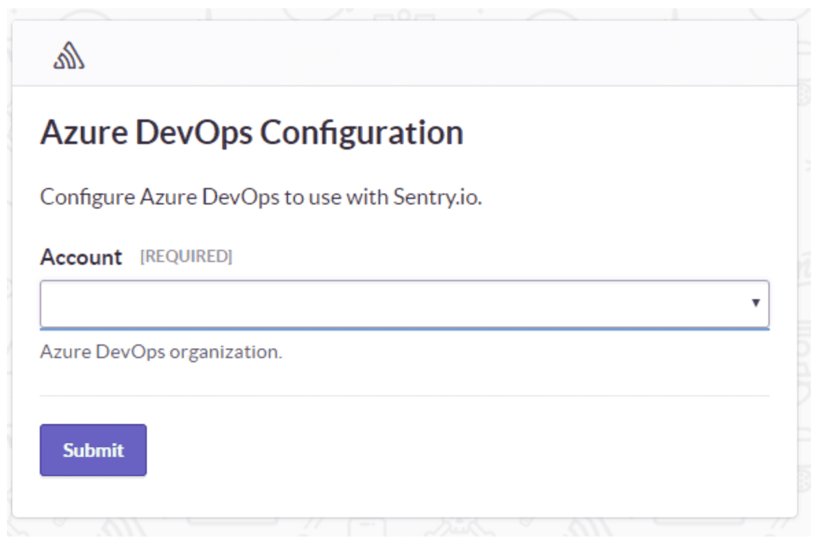 An Azure DevOps install window should pop up. Select the Azure DevOps account you'd like to link with Sentry, and press Submit.