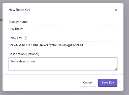 - Click New Relay Key to add the key and save it: